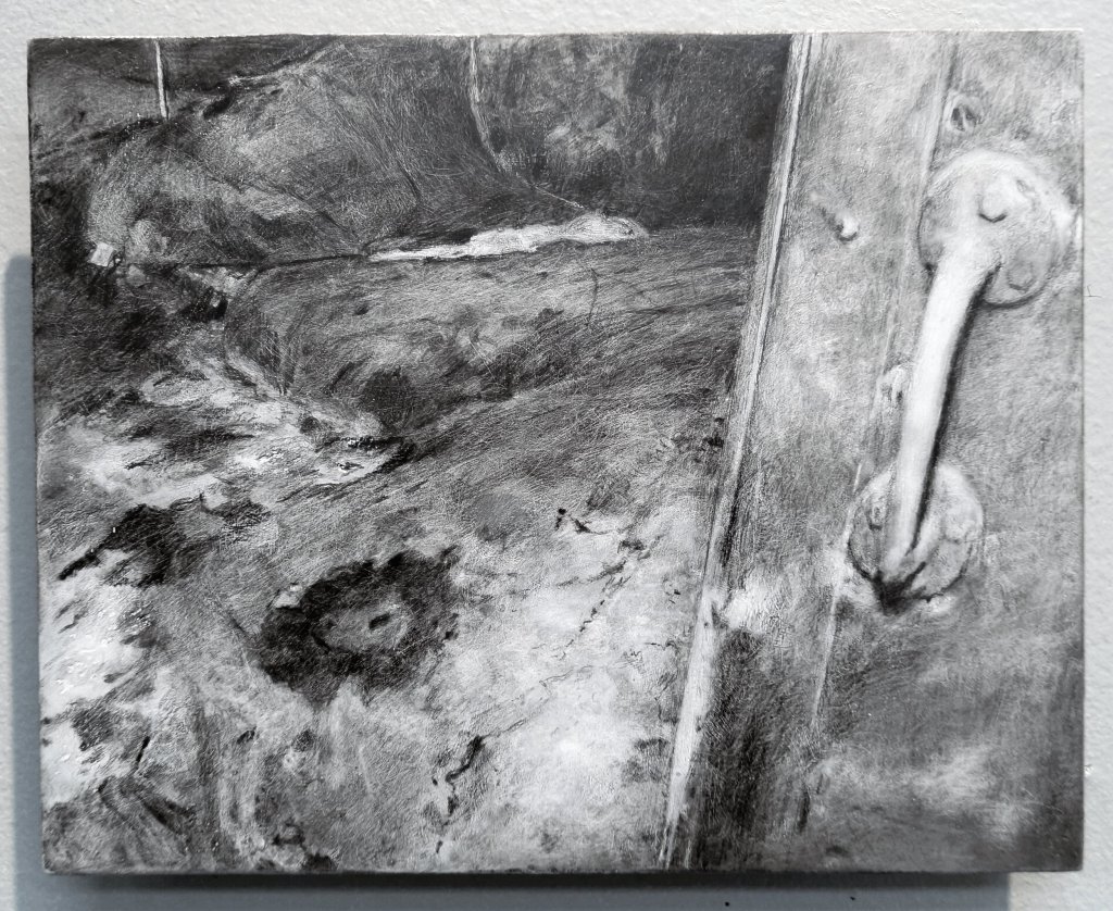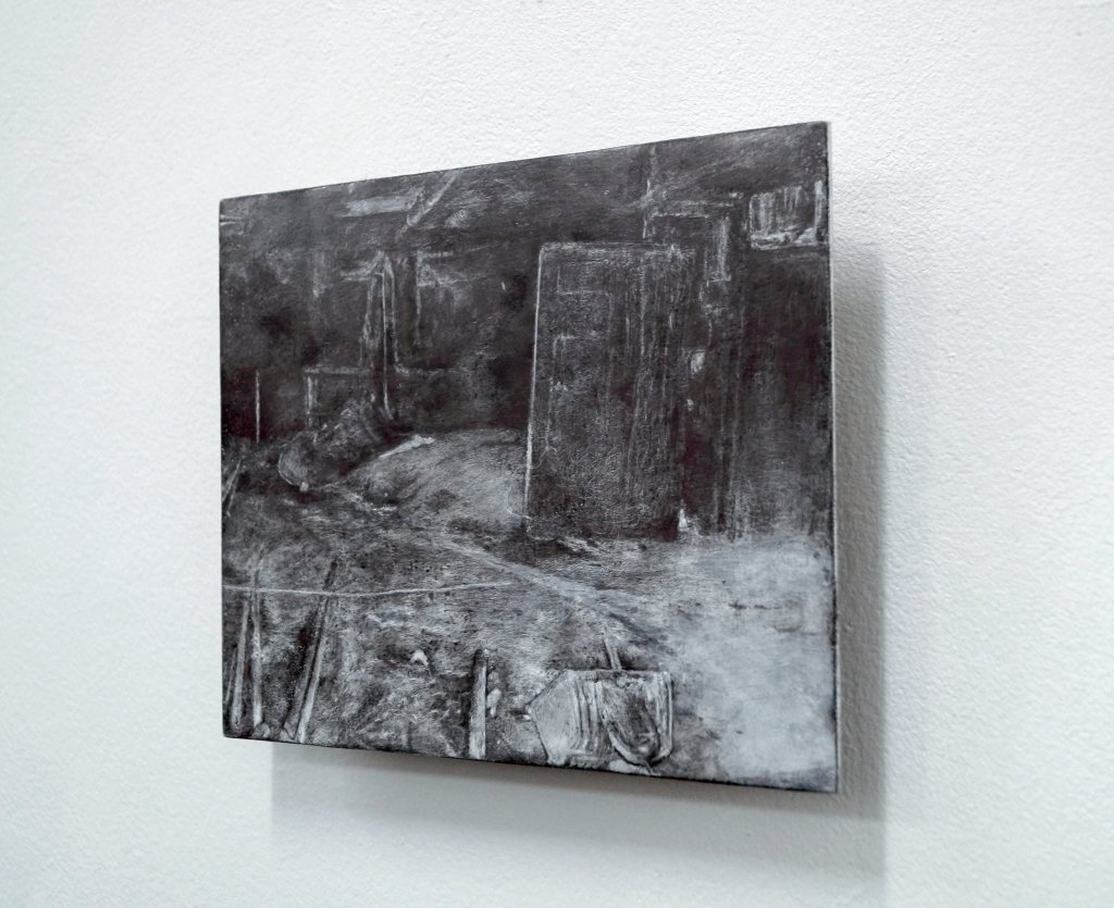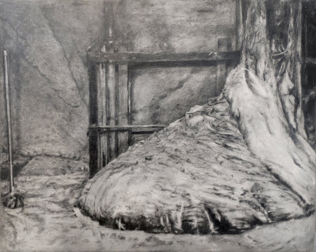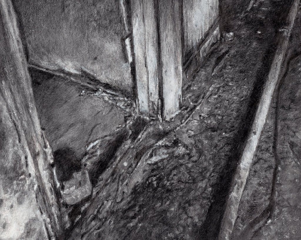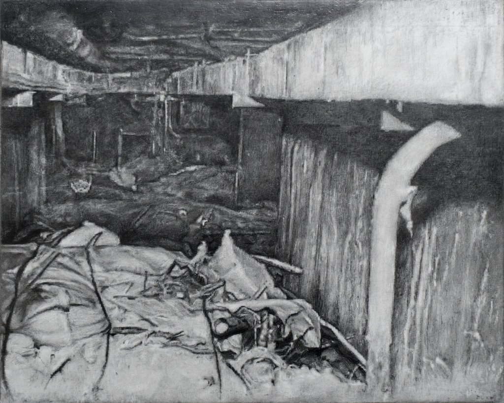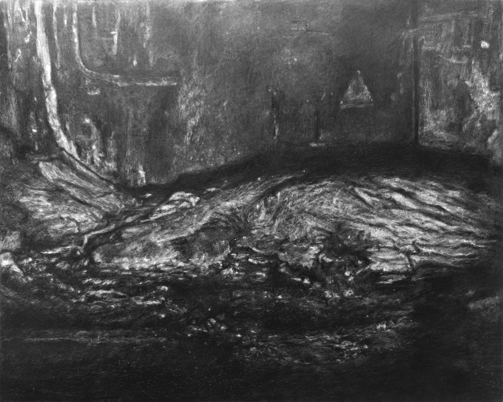 217 (Elephant’s Foot) is a series of 12 graphite drawings, based on images sourced from investigations of section 217 in the 4th block of the Chernobyl Nuclear Power Plant. With this project, the Elephant’s Foot is interpreted as an object that is necessarily distant and invisible, deriving information from the limits of what is visually accessible in these degraded and artefacted digital black and white images.