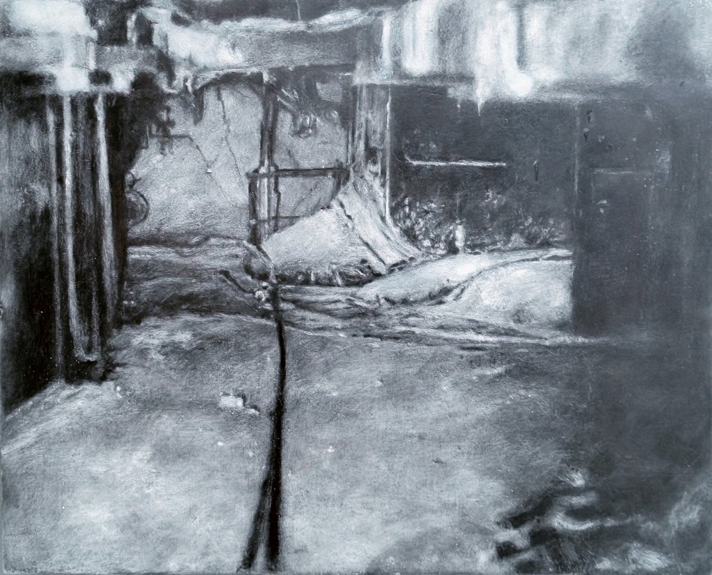 217 (2015-2017) is a series based on images sourced from an article outlining investigations of section 217 in the 4th block of the Chernobyl Nuclear Power Plant, which contains a lethally radioactive glob of melted matter, formed following the nuclear meltdown in 1986 and dubbed the “Elephant’s Foot”. The object and its surroundings were only safely perceivable through images captured with a remotely controlled camera. While my project refers to the ecological immensity of catastrophe, it is also a personal reconciliation with my childhood experiences in Belarus, where the cultural and emotional consequences of the disaster were never fully perceivable or understood.