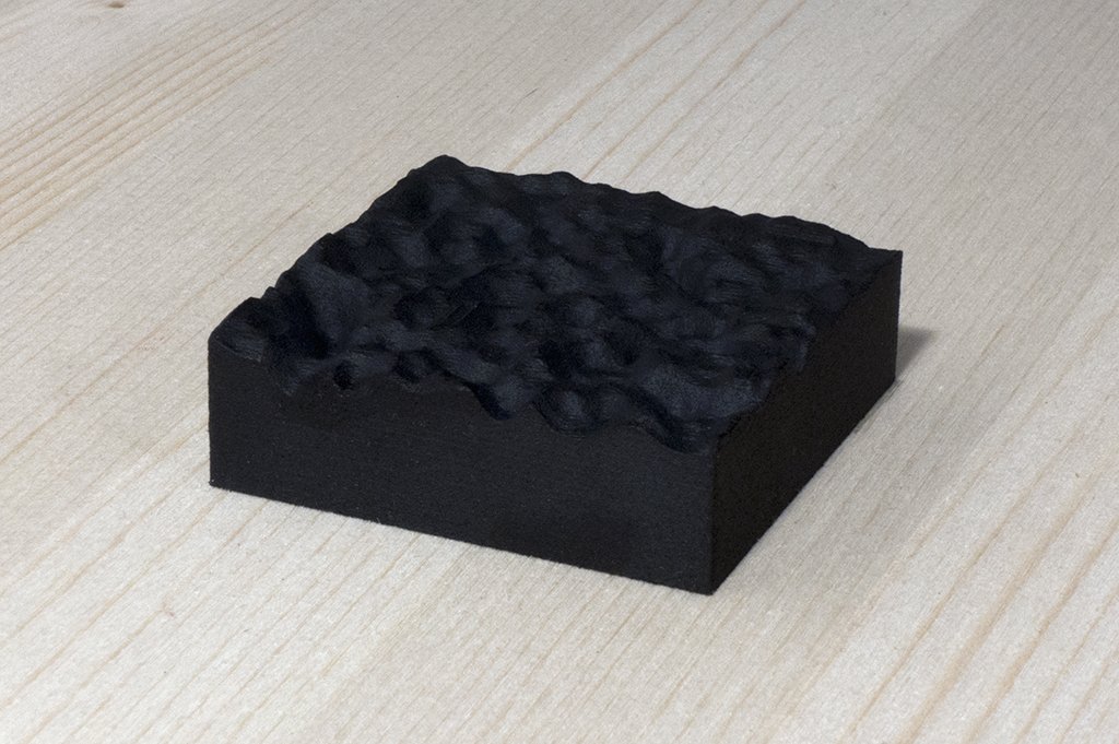 217 (Elephant’s Foot Surface Studies) are 20 3D printed objects representing selected sections of the sourced images (close-ups of the surface of the Elephant’s Foot). The form of each 3D rendering was extruded from grayscale variations in the selected sections, based solely on the digital information available.