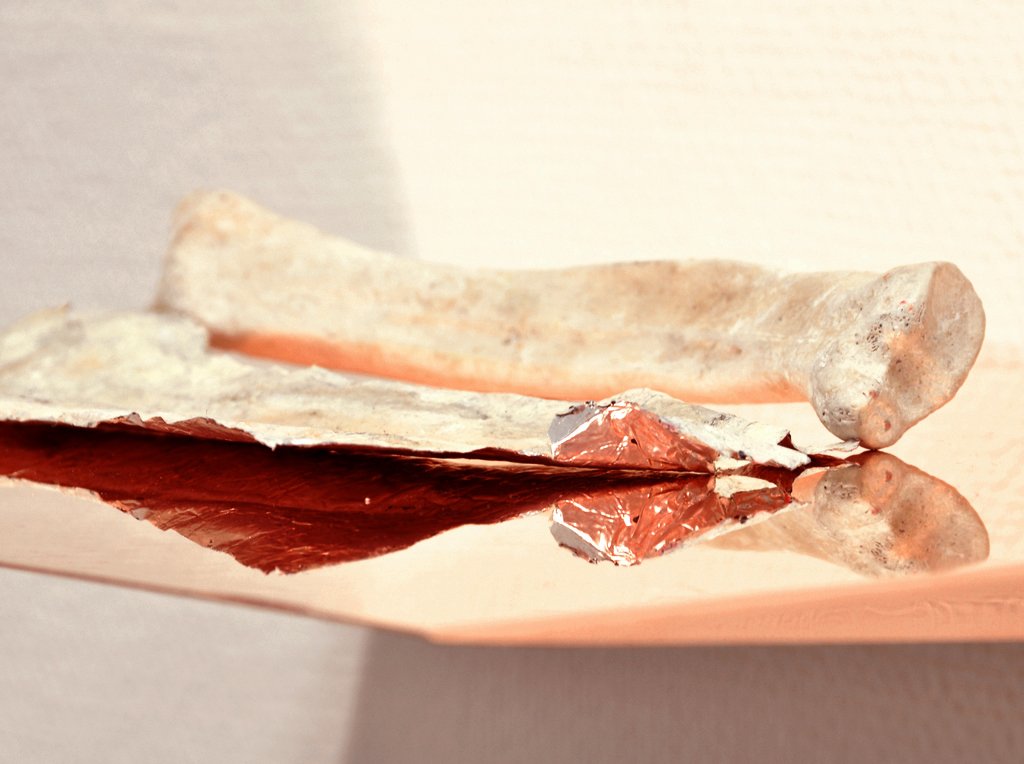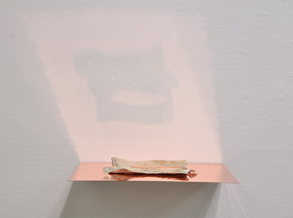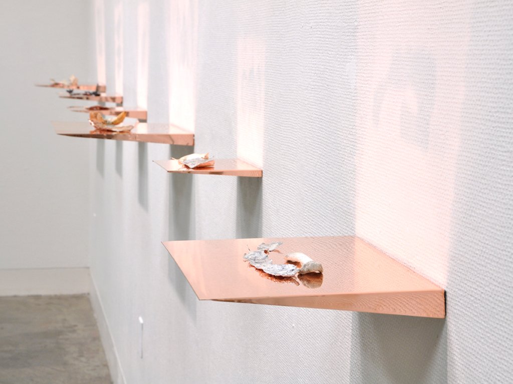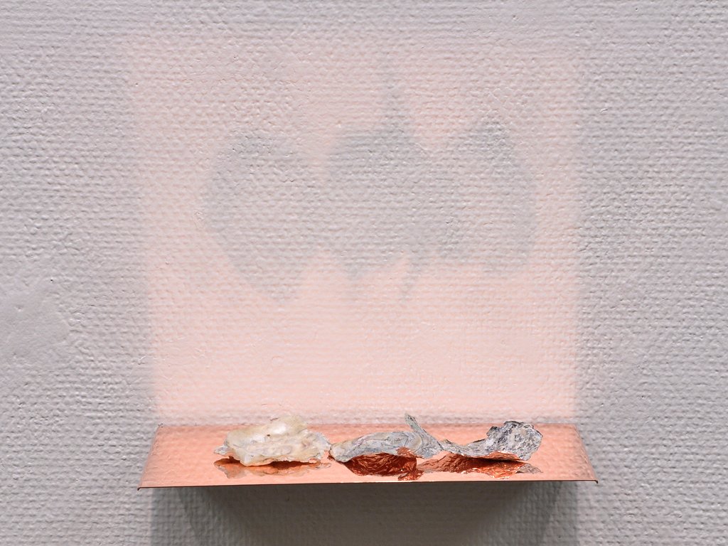 caput mortuum 2, 2012, oil paint on aluminum foil, copper shelves