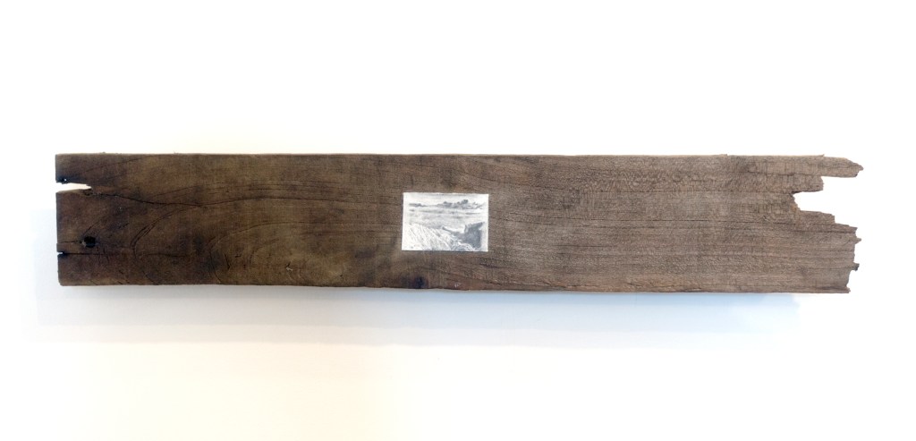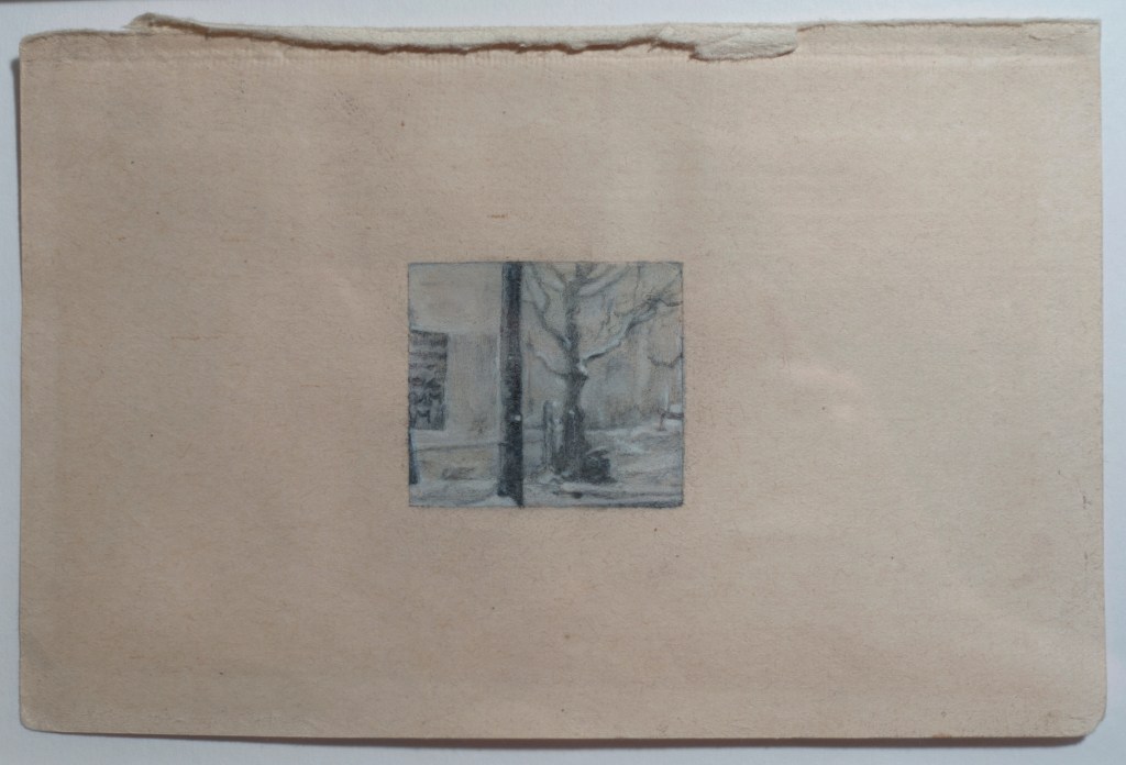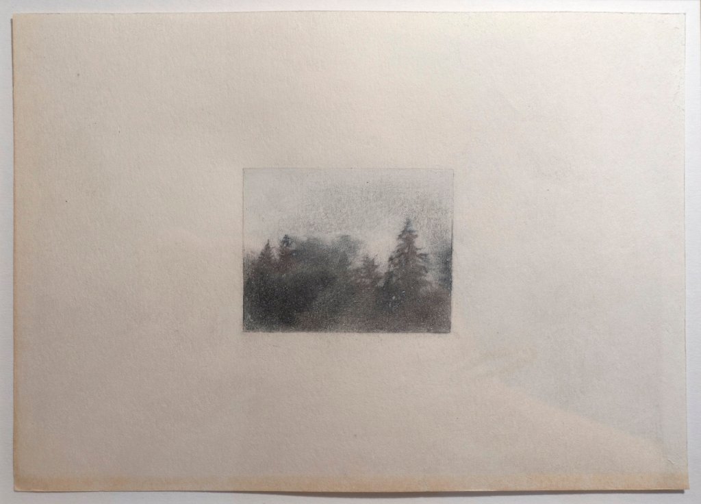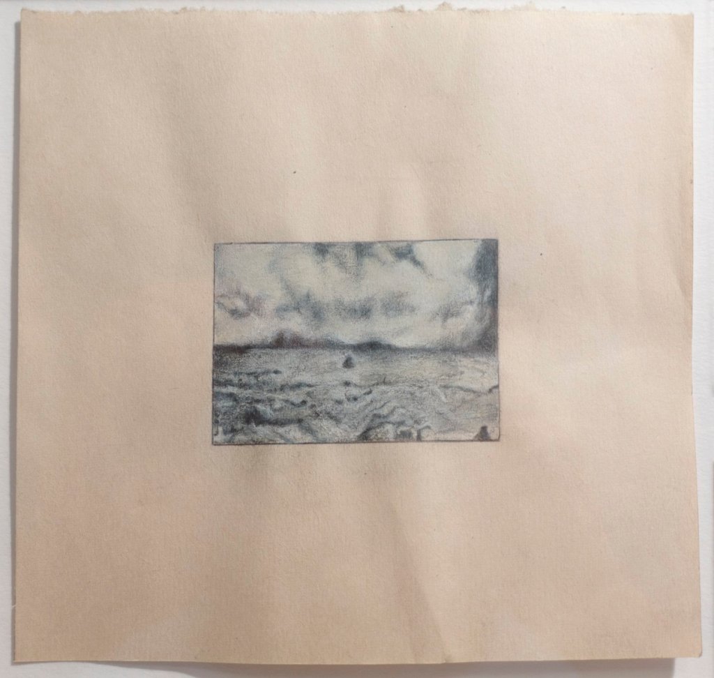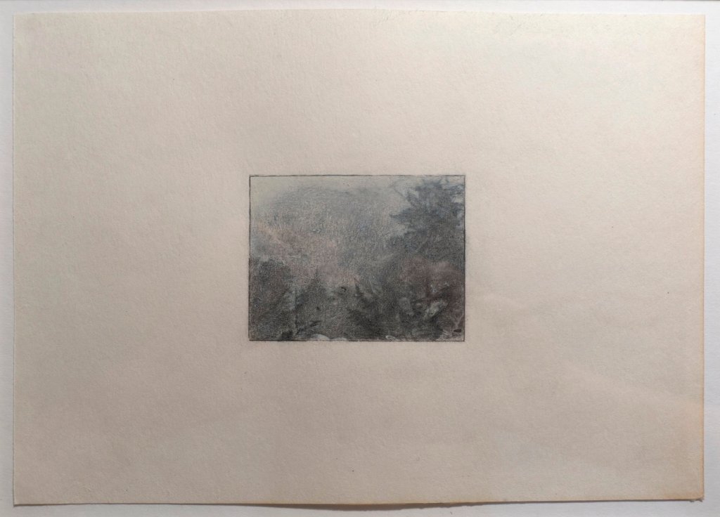 when people came out of the forest there was nothing (2018) is informed by an introverted, acquired awareness of WWII as an indirect afterimage amassed from museums, stories, fictional literature, and cinema. The works in this series are based on selections of landscape backgrounds from found photographic documentation of the Great Patriotic War in Belarus. They are close studies of low-resolution, black and white files, translated into an accumulation of marks, surface, and atmosphere. The found images document instances of historical events and their landscape backgrounds were not intended to be the focus; the selected fragments on which the drawings are based appear to be distant and incomplete.